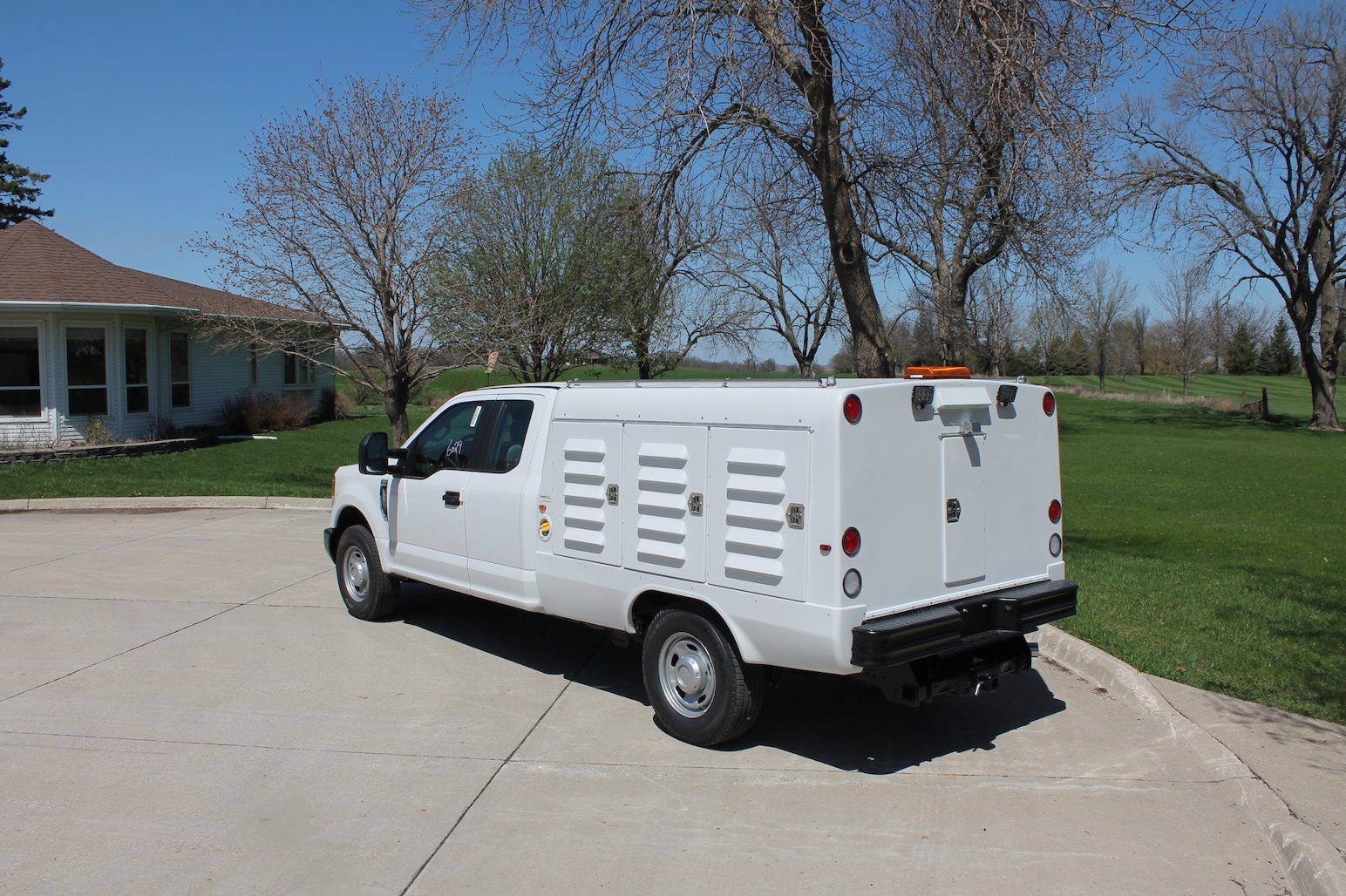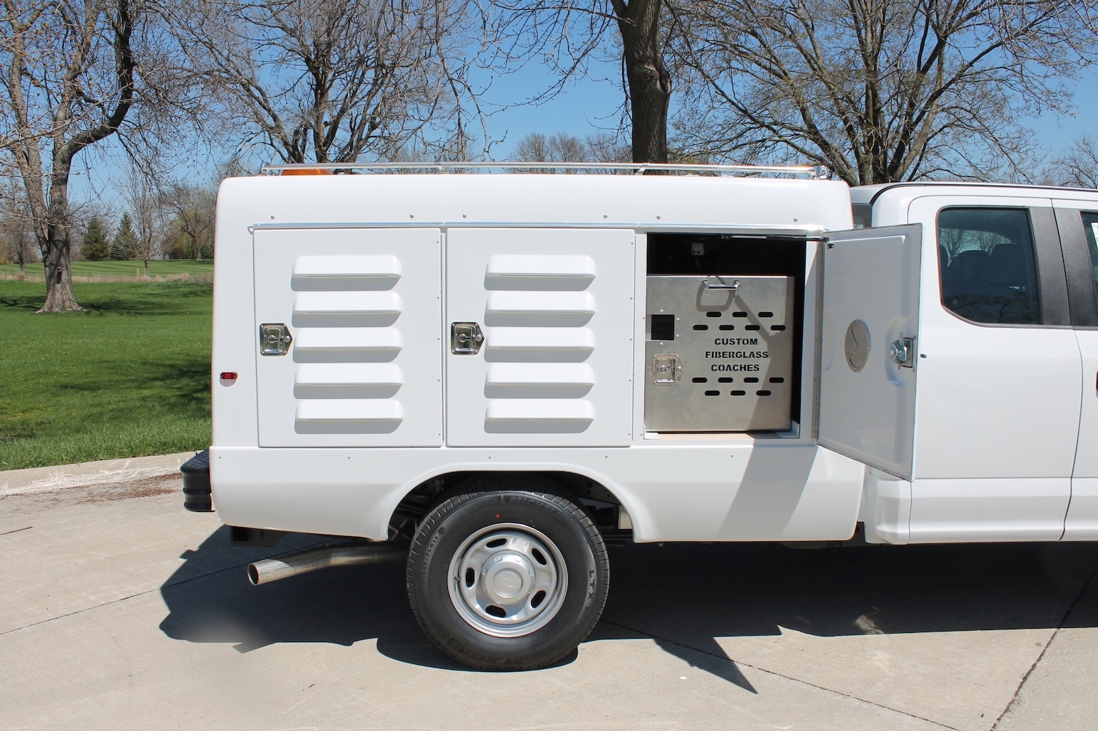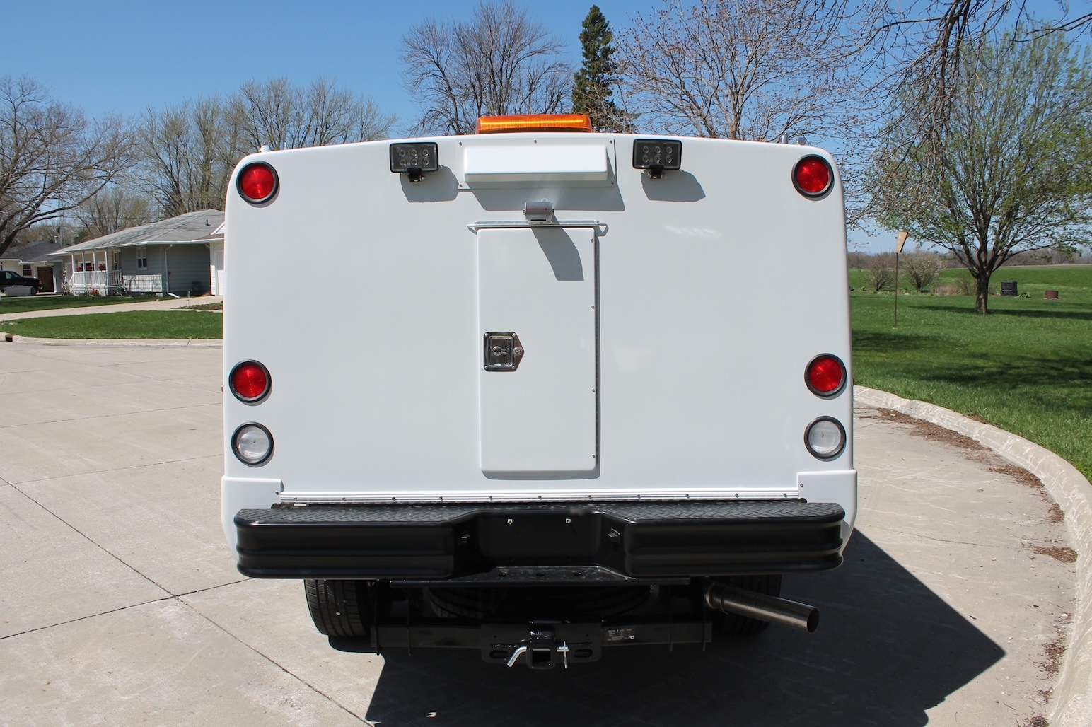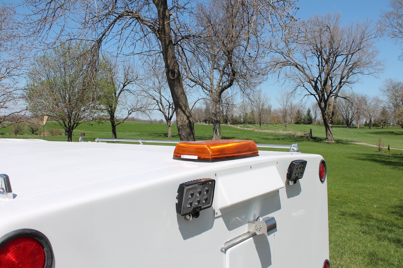 All LED bright white lights in individual compartments minimizes power draw on vehicle. Rubber mounted LED running, stop, turn and back up lights. Side mounted clearance lights installed away from gas tank filling areas in accordance with FMVSS.